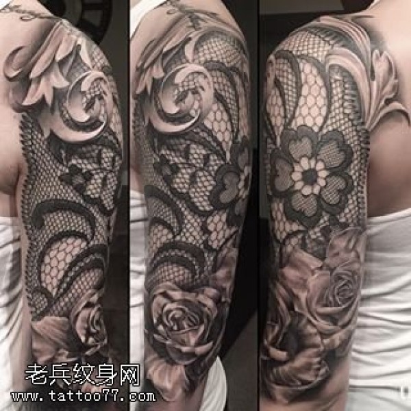 女生肩花纹身_15张女性双肩对称的肩花纹身图案作品图片