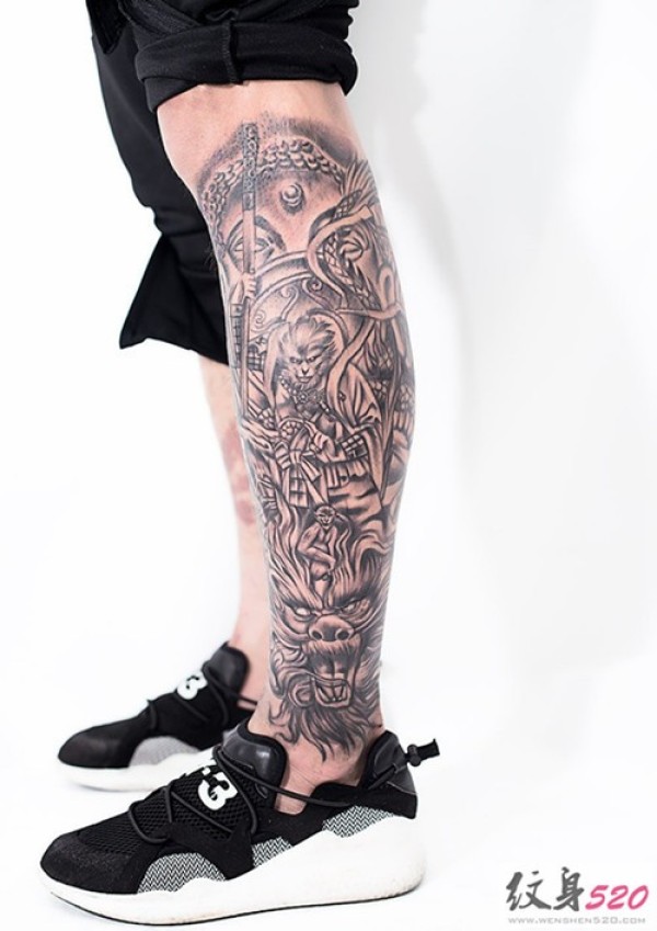 花腿纹身--一组大黑腿纹身图案作品欣赏