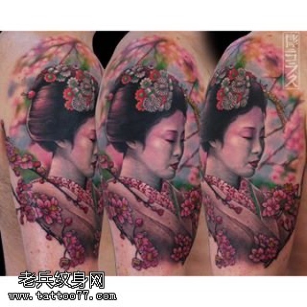 女生肩花纹身_15张女性双肩对称的肩花纹身图案作品图片