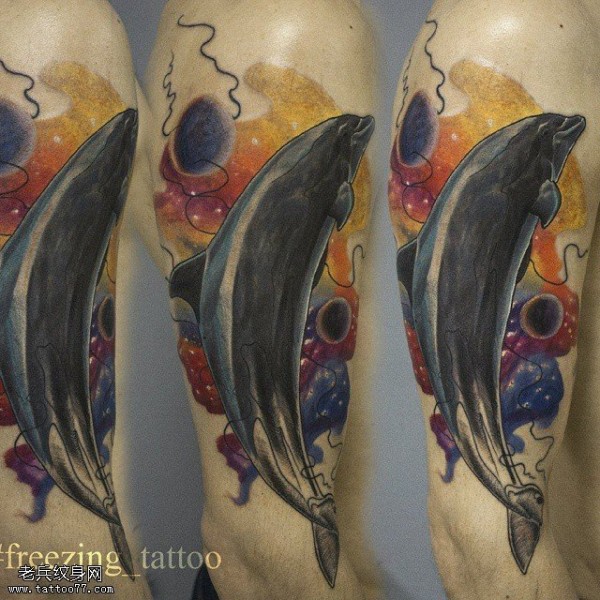 肩部星空鲸鱼纹身图案