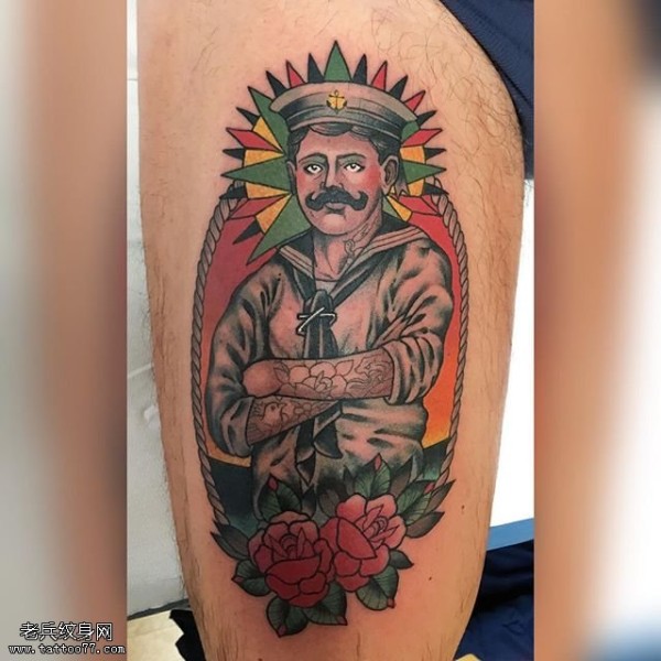 传统花腿纹身--18张传统风格的大花腿纹身图案作品