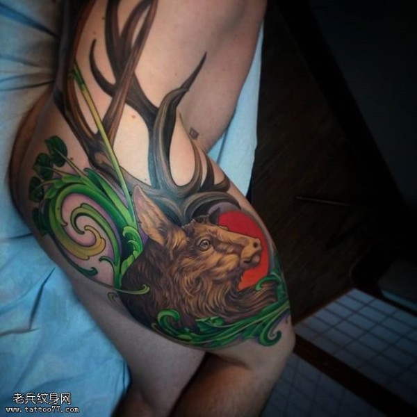 臀部的灵鹿纹身图案