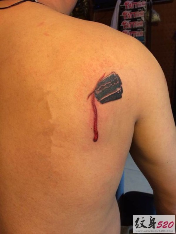 肩部滴血刀片纹身图案