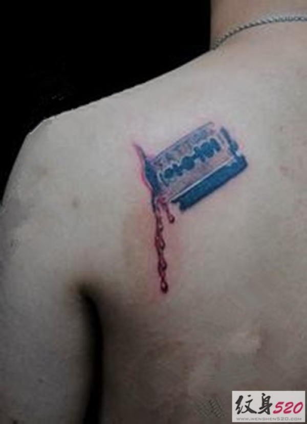 肩部滴血刀片纹身图案