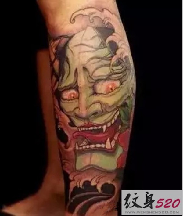 腿部狂野般若纹身