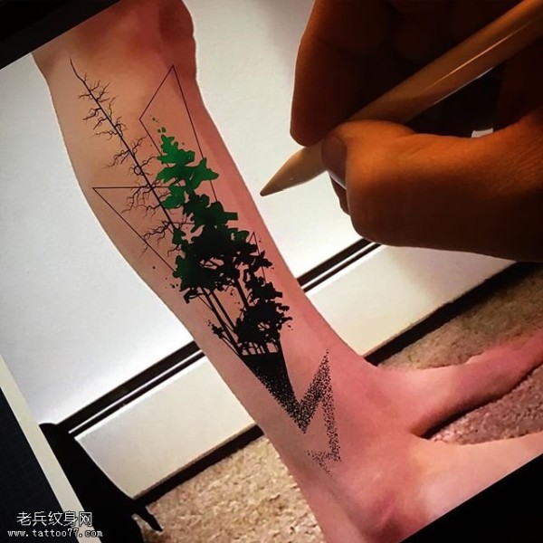 小腿的小树纹身图案