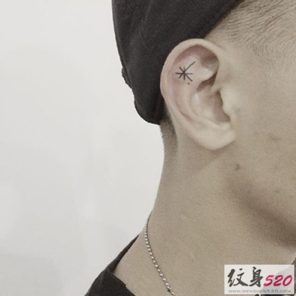 多款女生耳后黑色线条素描文艺小清新小图案纹身图案