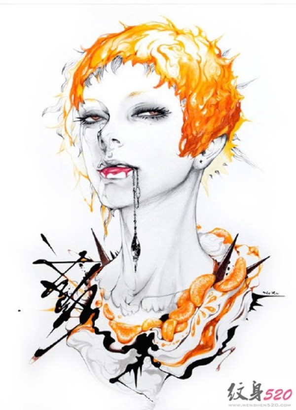 能面万媚纹身手稿_52张日式能剧面具纹身手稿图案素材欣赏