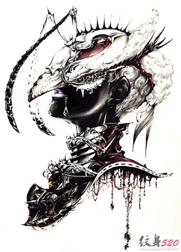 能面万媚纹身手稿_52张日式能剧面具纹身手稿图案素材欣赏