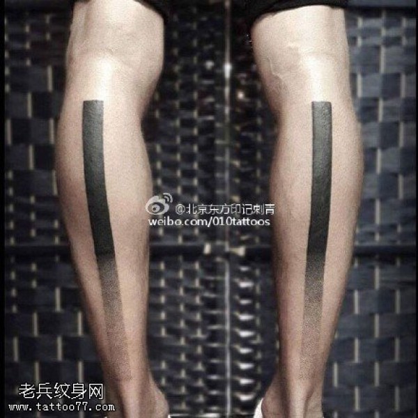 腿部黑灰的图腾纹身图案