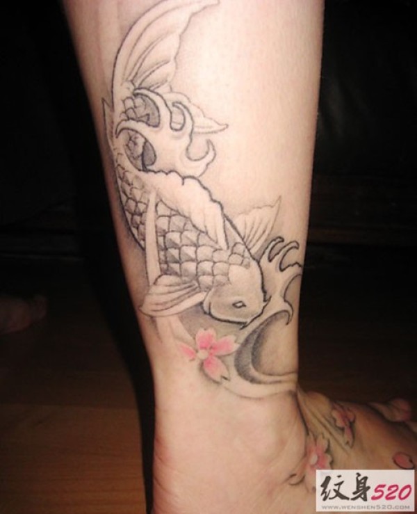 传统鲤鱼花小腿纹身_腿部纹身图案大全_纹身图吧