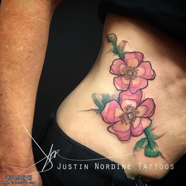 分享一款腰部时尚性感的蝶恋花纹身图案_腰部纹身图案大全_纹身图吧