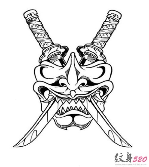 能面万媚纹身手稿_52张日式能剧面具纹身手稿图案素材欣赏