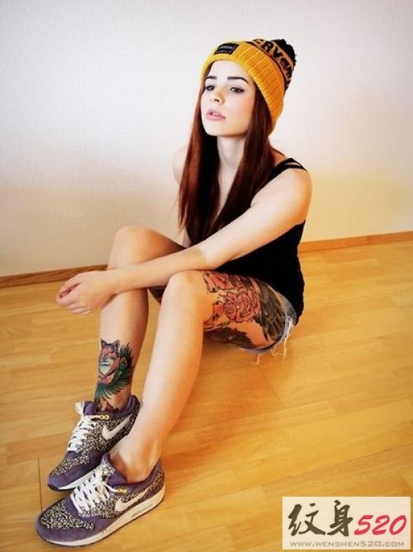 女孩腿部唯美刺青_腿部纹身图案大全_纹身图吧