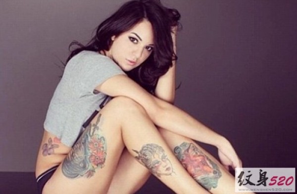 美女腿部个性纹身图案