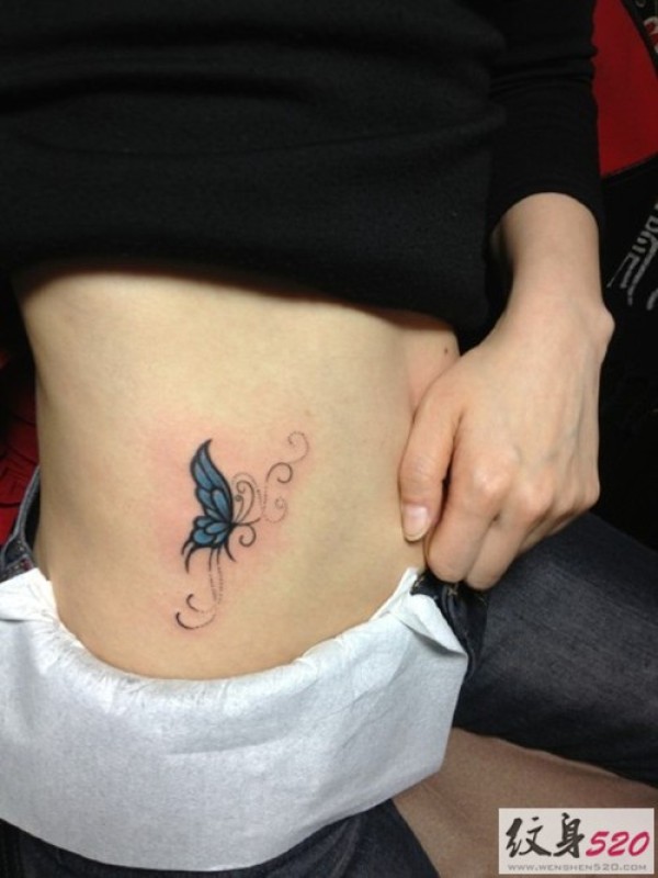 分享一款腰部时尚性感的蝶恋花纹身图案_腰部纹身图案大全_纹身图吧