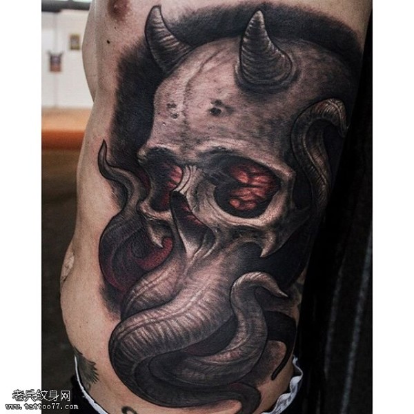 侧腰女骷髅刺青图案图片_骷髅纹身图案大全_纹身图吧