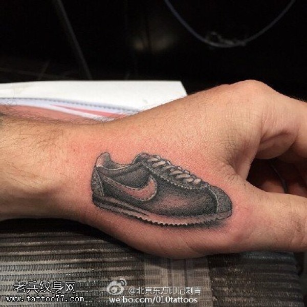 手指上的球鞋纹身图案