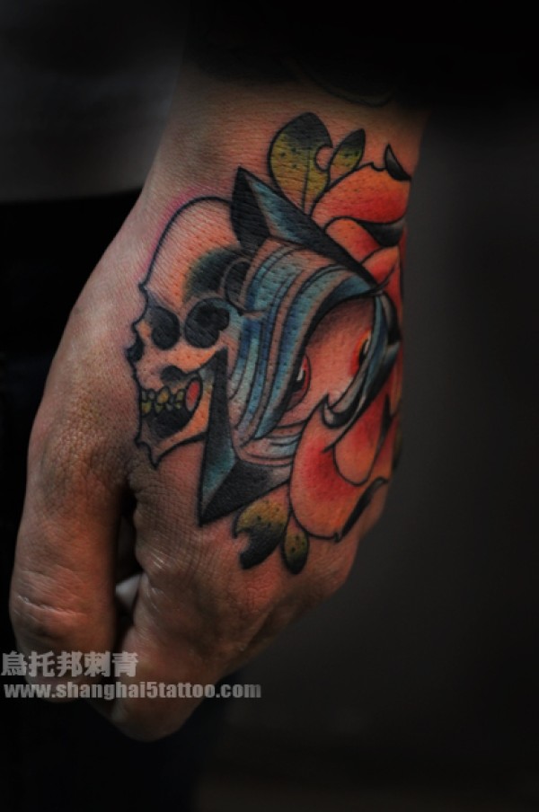 手背oldschool图案_15张手背上的oldschool纹身图案作品