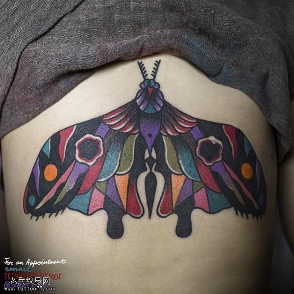 腹部彩色的蝴蝶纹身图案