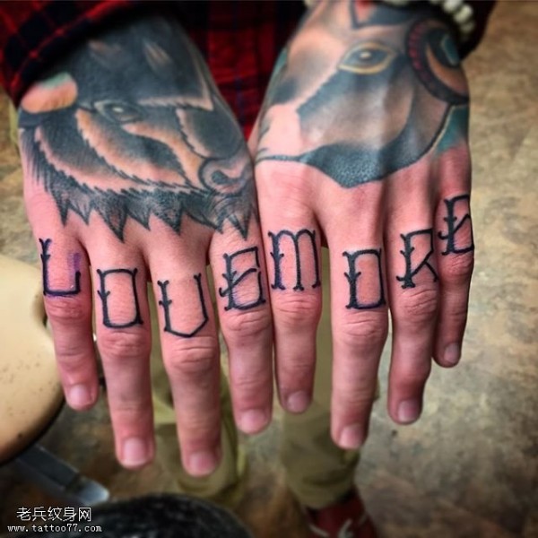 手指的花体字母纹身图案