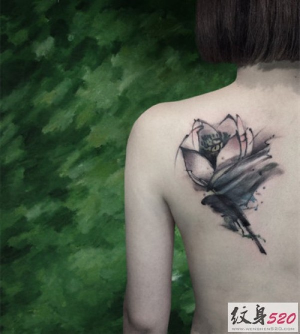 女生肩花纹身_15张女性双肩对称的肩花纹身图案作品图片