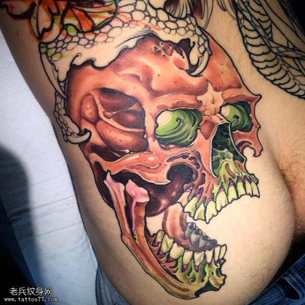 侧腰女骷髅刺青图案图片_骷髅纹身图案大全_纹身图吧