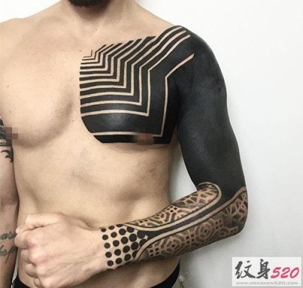 男士黑灰半甲纹身图片