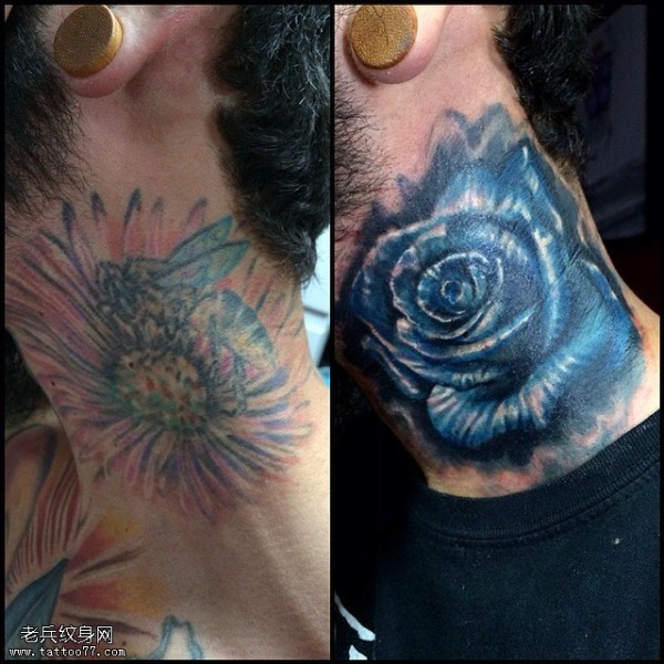 女生肩花纹身_15张女性双肩对称的肩花纹身图案作品图片
