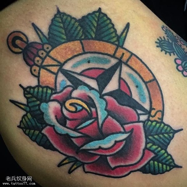 欧美玫瑰纹身 男生手臂上花朵纹身图片