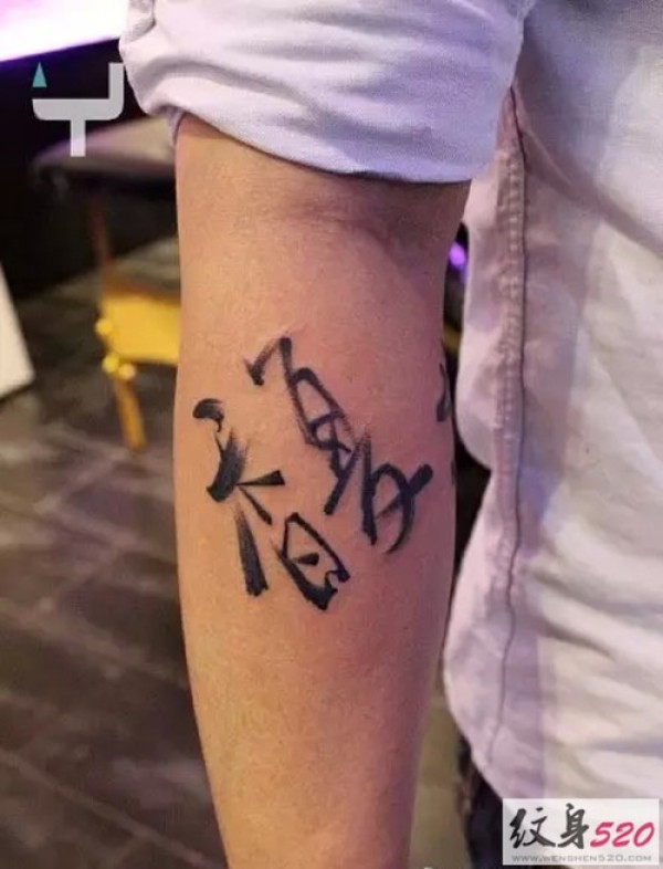 手臂古典书法纹身
