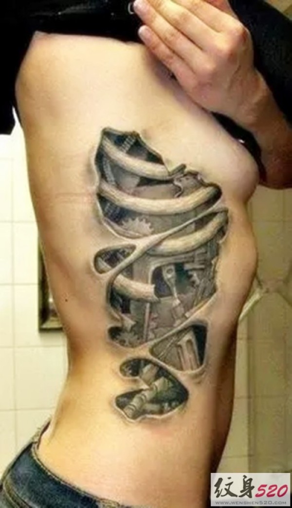 侧腰霸气老虎头纹身_腰部纹身图案大全_纹身图吧
