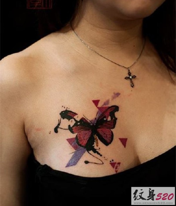女性喜欢的漂亮的3D立体蝴蝶纹身图案