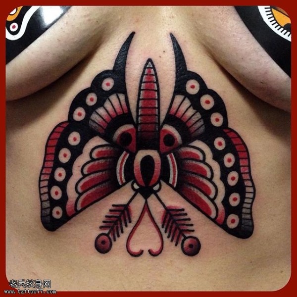 胸间的蝴蝶纹身图案
