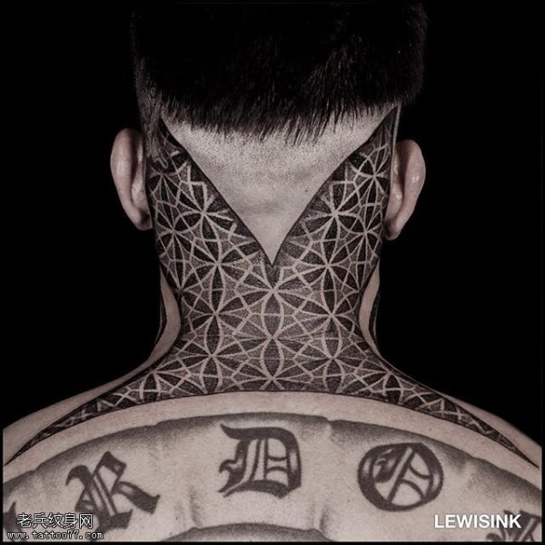 颈部点刺密集图腾纹身图案