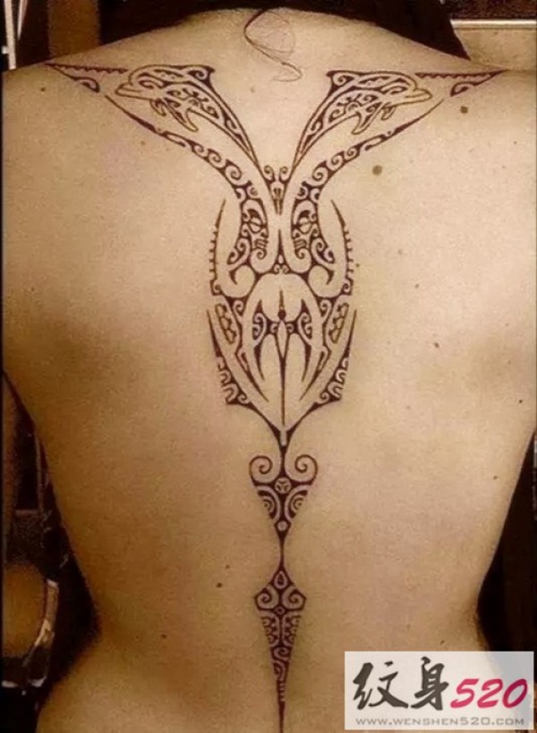 男性背部帅气的部落图腾纹身图案