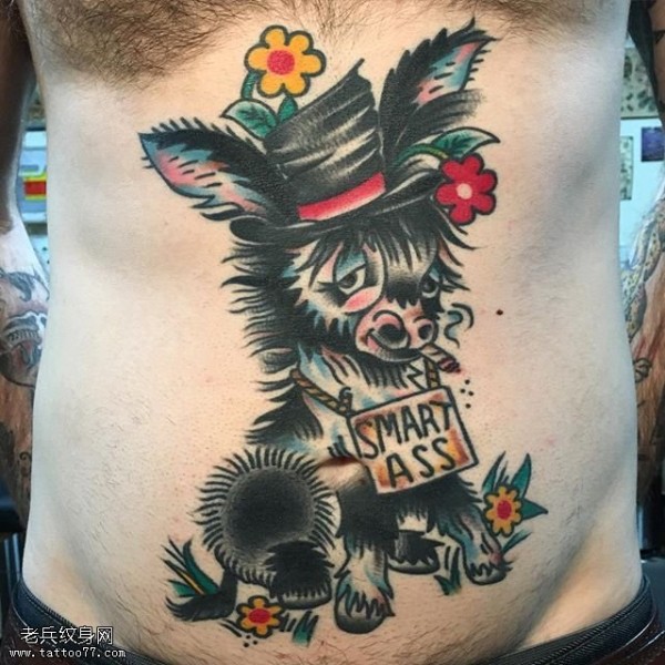 腹部点刺的小狗狗纹身图案