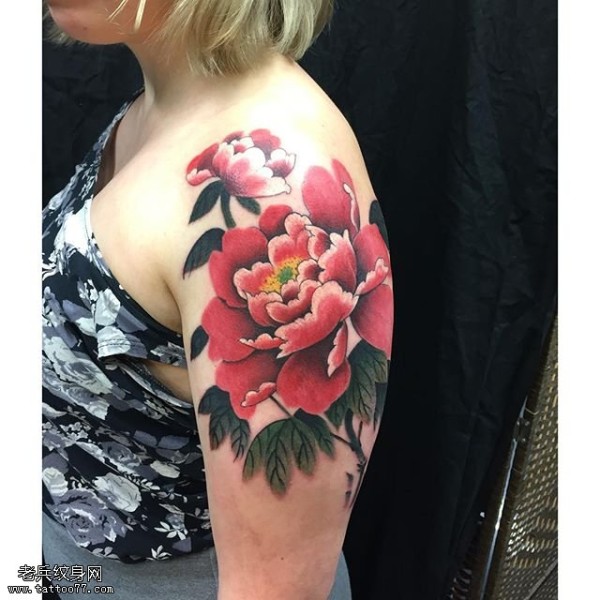 女生肩花纹身_15张女性双肩对称的肩花纹身图案作品图片
