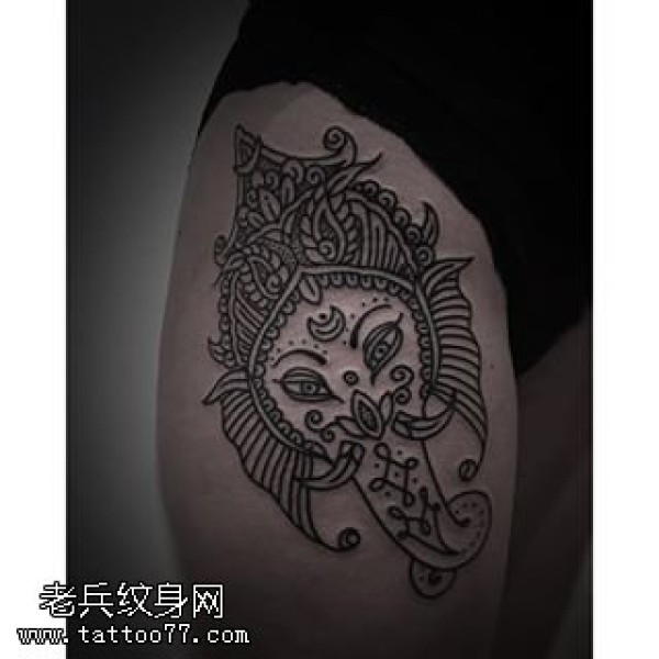 小腿上一款大象纹身图案_腿部纹身图案大全_纹身图吧
