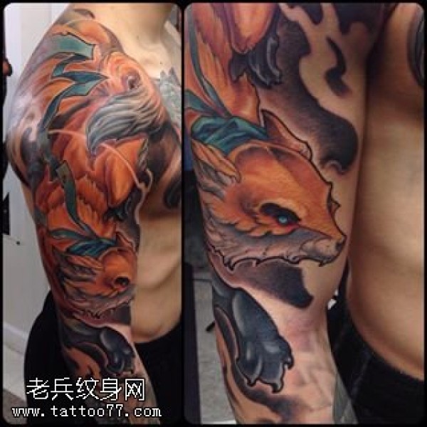 肩部的九尾狐纹身图案