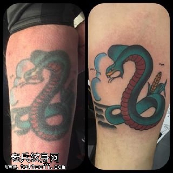 德国恐龙纹身眼镜蛇和卡通鳄鱼纹身水彩动物图案纹身