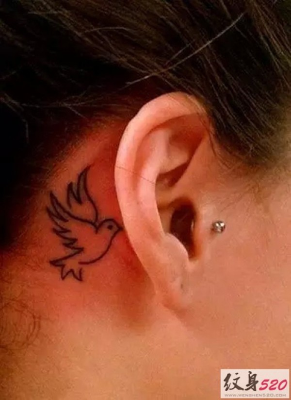 多款女生耳后黑色线条素描文艺小清新小图案纹身图案