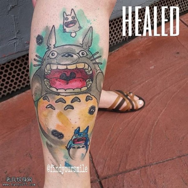 小腿上可爱的龙猫纹身图案