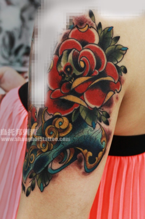 school花臂纹身--一组漂亮的school风格的花臂纹身图案作品