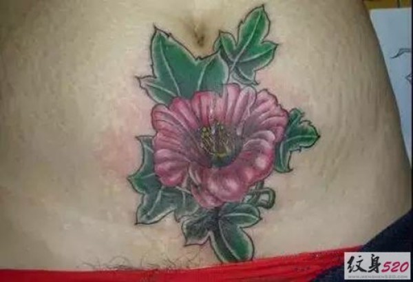 女性腰部莲花花纹刺青_腰部纹身图案大全_纹身图吧