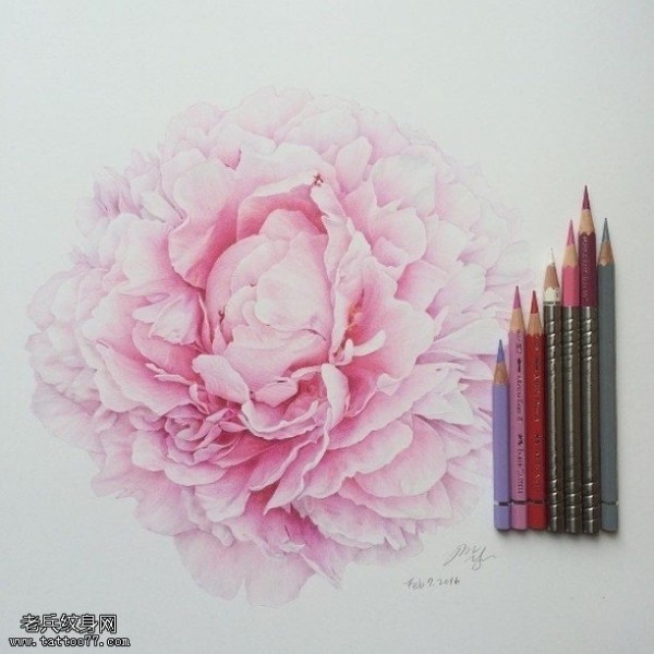 手稿清新的牡丹纹身图案