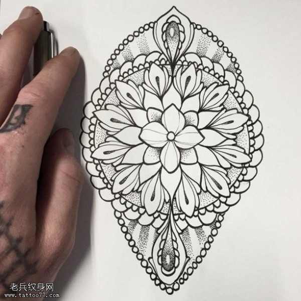 曼陀罗点刺梵花_100张曼陀罗点刺梵花纹身手稿图案