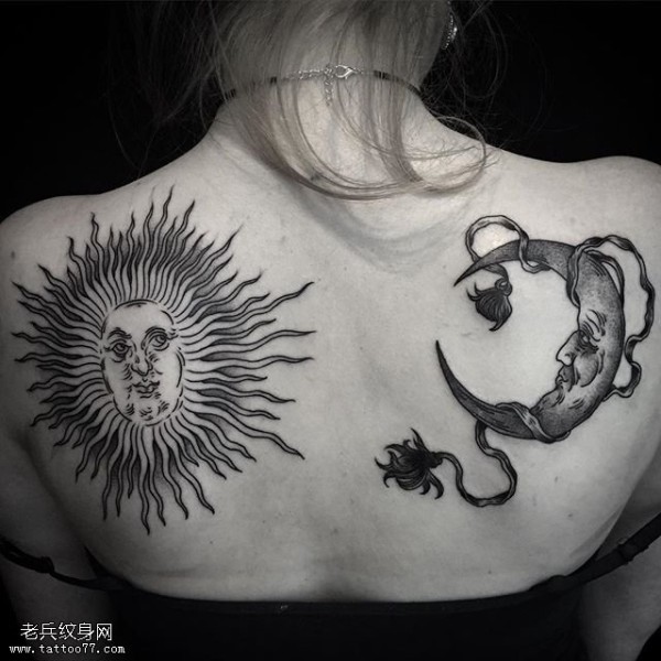 背部的太阳月亮图腾纹身图案