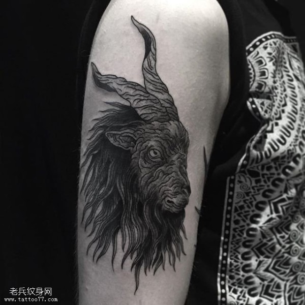 肩部点刺羊头纹身图案