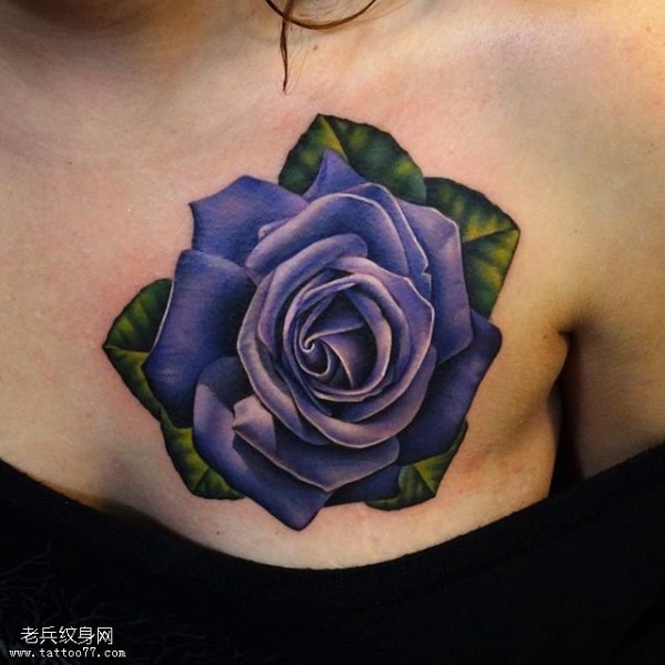 胸部的蓝玫瑰纹身图案